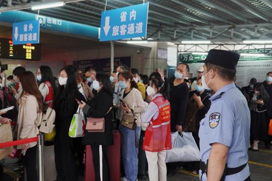 国庆小长假,各地迎来客流高峰。根据相关防疫政策要求,乘坐长途旅客列车需要持48小时核酸检测阴性证明,到站旅客需落实“落地检”。衡阳铁路公安处主动研判客流动向,增加面上警力部署,进一步强化返湘返衡人员管理,积极配合车站推广实施扫码验证、“落地检”等防疫工作。