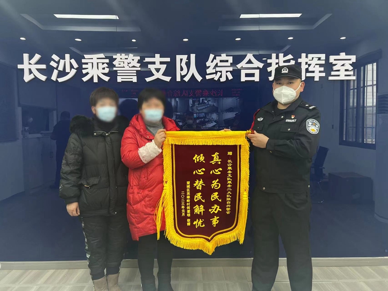 1月21日7时40分许,长沙乘警支队指挥室接旅客何女士求助称:1月20日,其从长沙南站乘坐G2131次回怀化老家途中,将7000元现金放在羽绒背心口袋里,回家后才发现背心口袋破了个洞,里面的现金只剩下不到2000元,怀疑其余的钱掉在了火车上,请求民警帮助寻找。接报后,长沙乘警支队民警陈自兴通过列车购票信息对失主何女士所在的6车厢15A座位周边旅客进行问询后,掌握到坐在何女士旁边座位的石先生当天曾在列车上捡到了5150元现金,并交给了列车工作人员。随后,民警电话联系当次列车车长后了解到,当时由于不能确认失主,已按规定将失物转交至铜仁站相关工作人员手中。了解情况后,民警通知失主前往铜仁站取回了遗失的现金。次日,何女士亲自到长沙乘警支队向民警陈自兴送去锦旗和感谢信,并激动地说:“陈警长,这些钱是我打算过年给家里晚辈包的压岁钱,我原本已不抱任何希望,没想到你竟然帮我找回来了,我真是太感动了,必须当面向你表示感谢!”