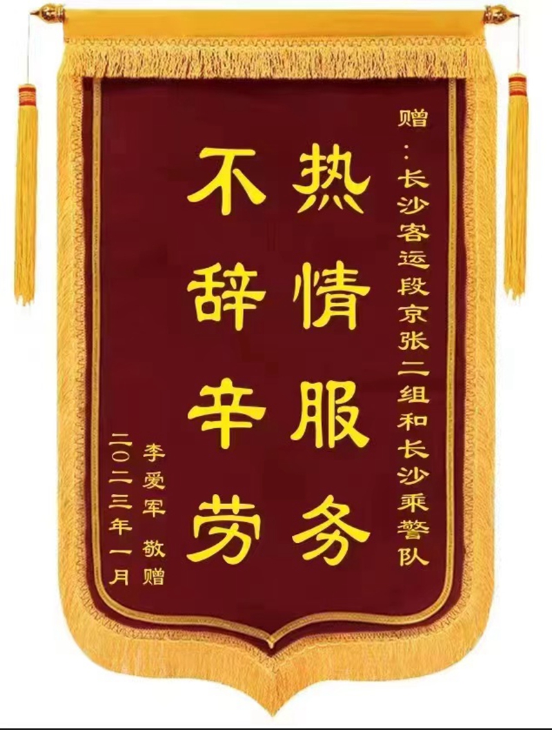 近日,长沙客运段长石车队收到一面锦旗,感谢列车工作人员辗转千里送还自己的失物。1月26日,由衡阳开往广州的K6573次列车衡阳开车后,12车的旅客尹某匆忙找到列车长李嘉,说自己在衡阳站安检口误拿了其他旅客的一个黑色双肩包,现在交给列车长处理归还失主。