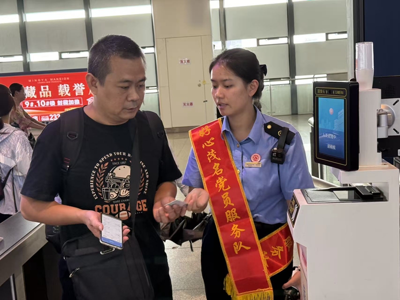 国庆中秋双节假期期间,茂名站“好心茂名”党员服务队以“全天候驻守、全场景覆盖”模式扎根服务一线,在进站口、售票厅、候车区等关键点位常态化值守,为旅客提供信息咨询、候车引导、失物招领等便捷服务。针对老幼病残孕等重点群体,精准对接需求,提供“一对一”全程帮扶。同时备齐轮椅、医疗急救箱等便民设施,全方位保障特殊旅客出行需求。邵阳站候车室通宵营业不关门,为旅客提供 24 小时服务。 在“验证安检”“候车检票”“站台出站”3个重点区域增派工作人员,并根据客流增开安检通道,在高峰时段启用‘双手检’模式,增加旅客进站效率。