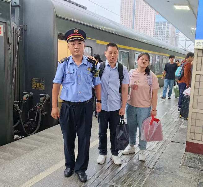 10月3日6时55分列车正点到达终点长沙站,王玉鑫已早早提前联系了站台工作人员,确保这对夫妇能够顺利出站。在交接的那一刻,盲人夫妇紧紧握住王玉鑫的手,感激地说:“虽然我们看不见,但我们能感受到你的温暖和细心,谢谢您,让我们在这个国庆假期感受到了家一般的温暖。”