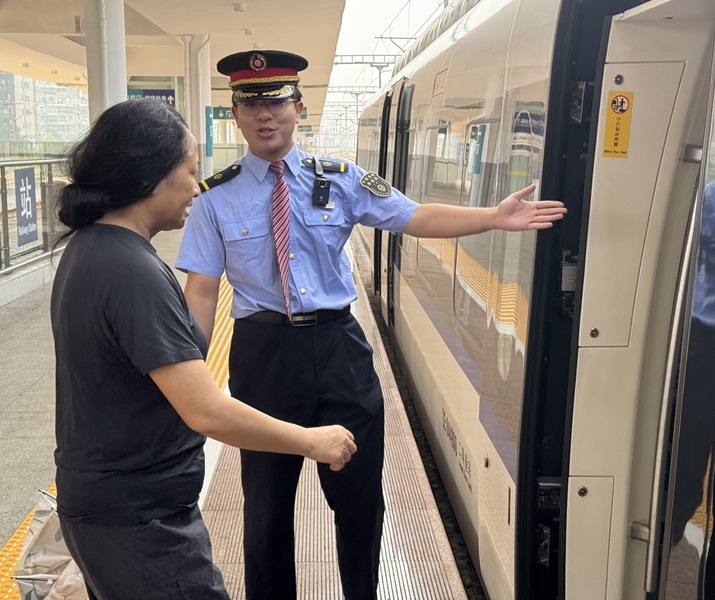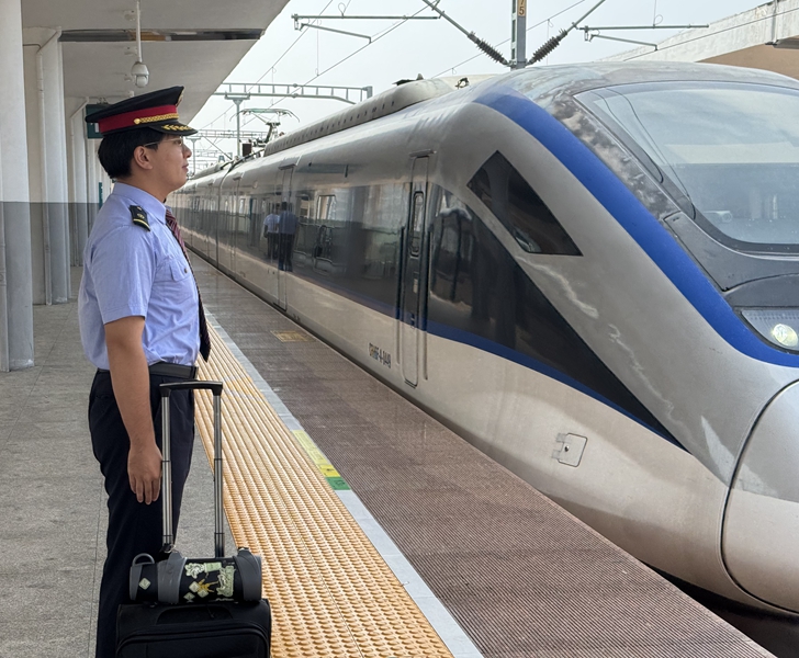 欧阳鹏震的岗位有些特殊。他是由动车组机械师成功转型为列车长的。这一转变背后,是长达三个月的严格培训,从服务礼仪、票务知识到应急处置、心理辅导乃至红十字救护,他与同事们经历了层层考核。“机械师的经历让我懂设备,列车长的培训让我懂旅客,两者凑一起才是完整的守护。”这段独特经历,赋予了他兼具技术严谨与服务热忱的双重特质。