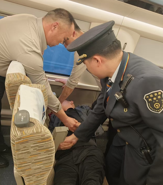 2025年10月10日16时40分,由中国铁路广州局有限公司长沙客运段长沙动一车队值乘的G507次列车从北京西站开出后,列车工作人员突然接到求助,11号车厢一名旅客突发疾病,身体出现抽搐状况。