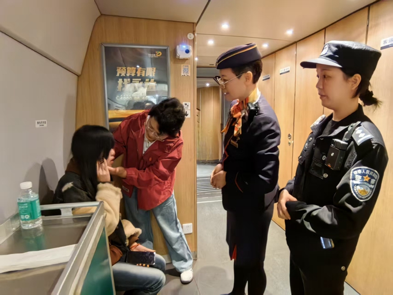 2025年10月18日,长沙客运段动三车队值乘的G2450次列车正疾驰在黔江至成都东的线路上。15时20分许,1车15C.座位的年轻女旅客突然捂住红肿的右脸,声音颤抖地向列车员求助:“我的下巴脱臼了,疼得厉害……”