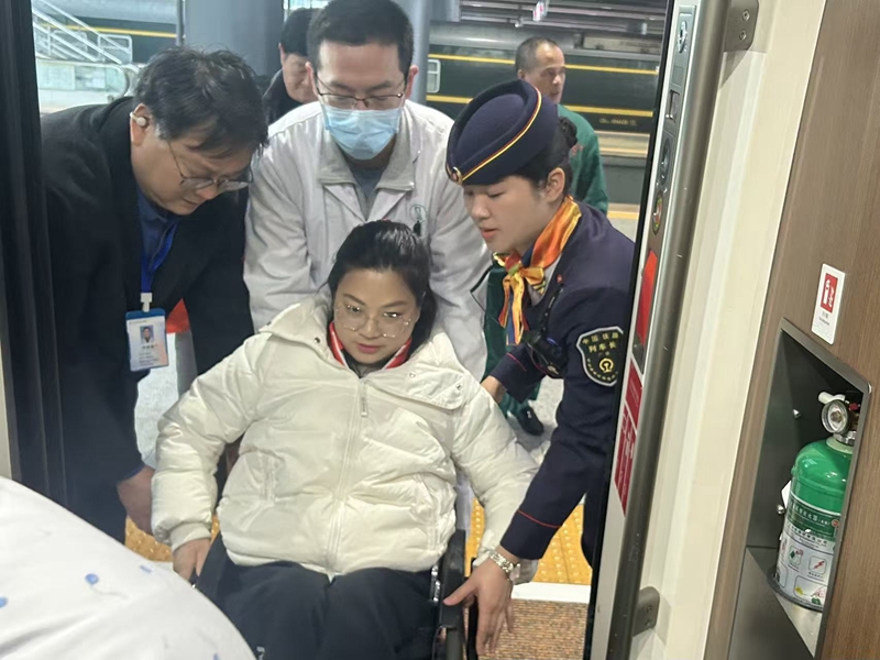 列车长吴金凤得知情况后,第一时间赶到现场,主动帮助健儿们提拿行李。考虑到他们的出行便利,吴车长贴心协调,将一行人从2号车厢调整至4号车厢无障碍厕所旁的座位,尽量为他们营造便利舒适的乘车环境。