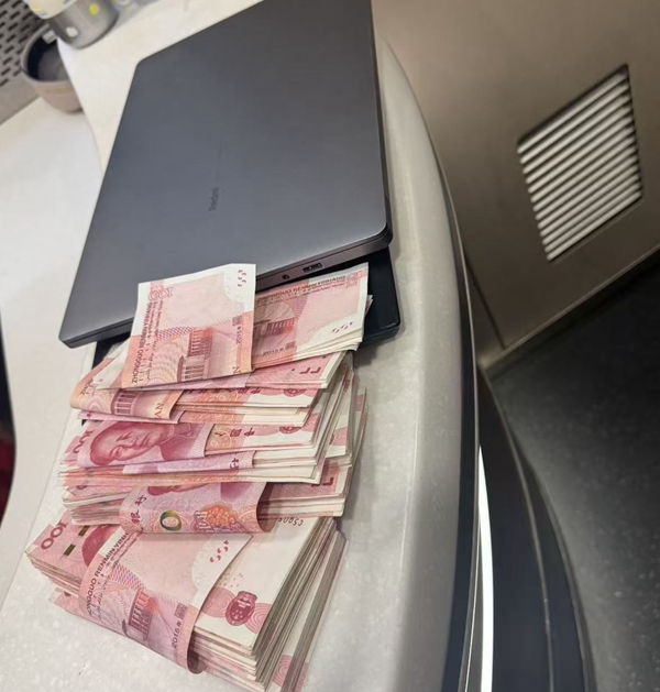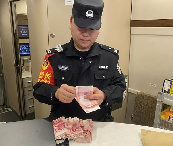 列车开出后不久,列车长王艳就通过12306客服收到旅客求助工单,顺利联系到旅客危先生,并得知了行李箱的具体车厢及座位信息。列车长王艳来到5号车厢,在11排座位处找到了危先生落下的行李箱。王艳立即喊来列车乘警李佩,两人一起打开行李箱,对包内物品进行清点,发现内里不仅有两台电脑,还有大量现金。经清点,共计有现金人民币36500元。