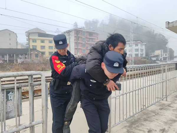 “抢救生命要紧!”带队民警当机立断,马上电话联系车站值班站长和信号楼工作人员特事特办,迅速打开一二站台间的铁栅栏门,并在车站严格确认股道安全的前提下,民警才俯身背起患病旅客,从二站台走直线急奔送至停在一站台的救护车。然后,民警又一路护送患病旅客到医院。