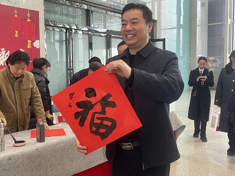市美术馆馆长介绍,此次活动以现场书写的方式传递新春祝福,连续两年来,两家单位始终坚持在岁末年尾开展志愿服务活动,将福气满满的新春祝愿带给旅客,带进千家万户,让返乡心切的游子旅途倍感温暖,提前感受浓浓的节日喜庆氛围。
