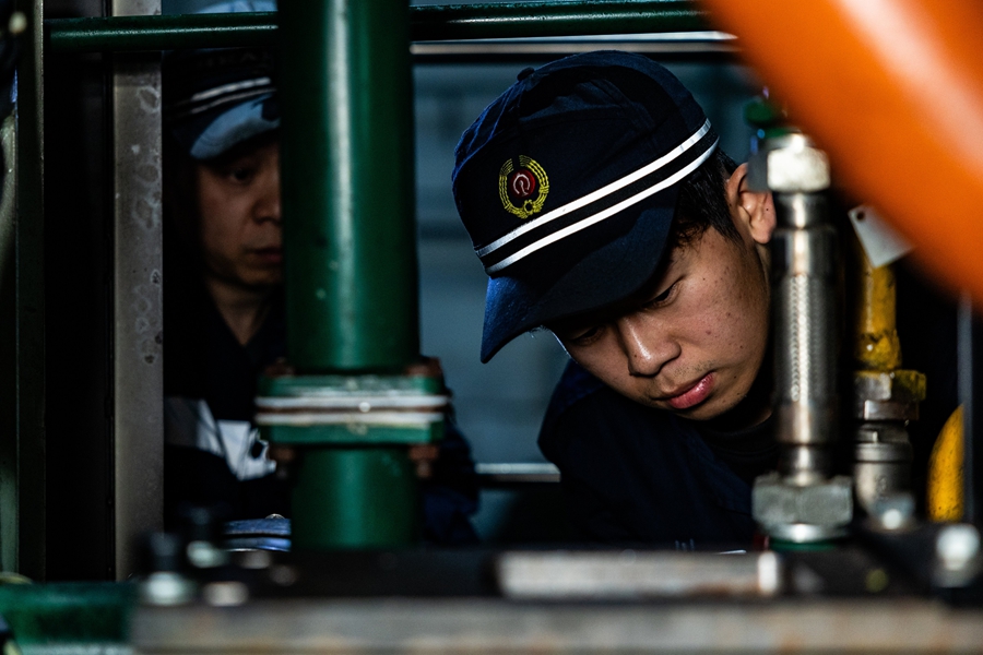 “故障既然是指向燃油压力,那么排查就从源头燃油泵开始”。冯振迅速制定了检修方案并进行分工。燃油管系如同人体血管分布在柴油机四周,龙洪波、彭荣辉、黄志敏等人打开工作帽上的检修头灯,开始分头寻找。