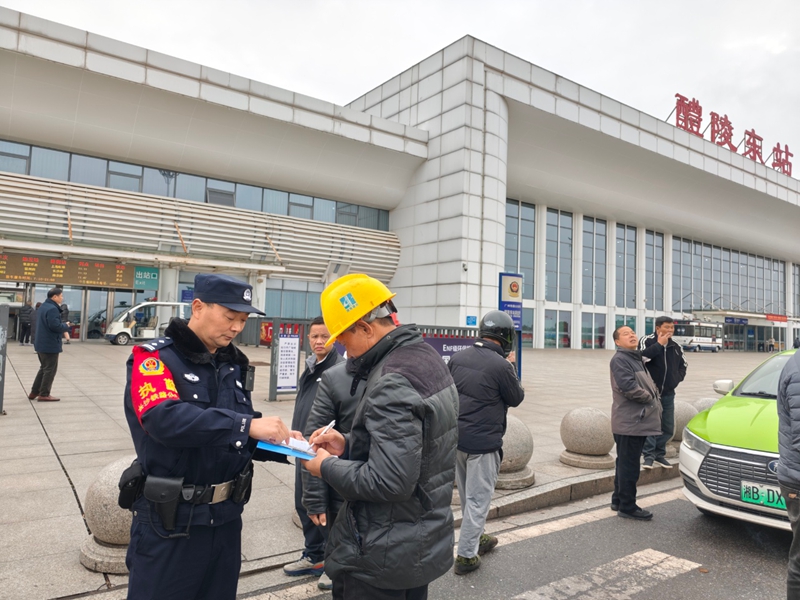 为保障春运期间旅客出行安全顺畅,2月11日,醴陵东站派出所联合醴陵市公安局交警大队、市交通运输局等单位对醴陵东站站前路开展多部门联合专项整治行动,全力净化站前环境,护航春运平安有序。
