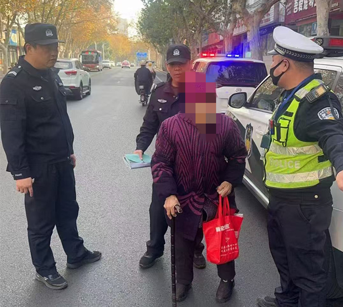 当日上午,一位拄着拐杖的老人在青年紫缘路口十字路口反复踱步,神色迷茫。交警注意到老人的异常,立即上前询问。老人言语含糊,说不出自己的名字、家庭住址或家人联系方式。