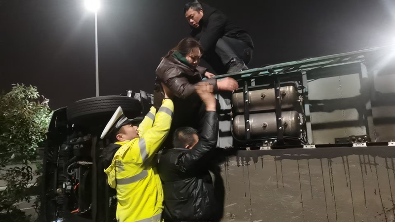 2026年1月21日凌晨4时许,湘潭雨湖辖区内因路面结冰,发生一起货车侧翻事故。驾驶人陶某军因路面湿滑、车速较快导致操作不当,所驾驶的仓栅式货车发生侧翻,其与妻子朱某满被困驾驶室内,两人均不同程度受伤。