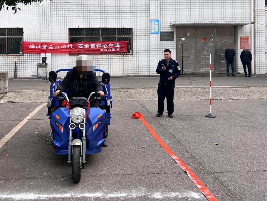 “以前在外面想考驾驶证,但不方便,刚回到家,听说交警送考下乡,马上就报名了,家门口就能考,省时省钱又省心”刚参加完科目一考试的陈某高兴的说道。本次送考按照“标准不降、简化程序”原则,考试过程中,监考民警全程携带执法记录仪,理论考试前,民警向参考学员详细讲解考取二轮、三轮摩托车驾驶证流程、规定和考试有关要求,并逐一核实参考人员身份信息,严禁代考、作弊等不良行为,保证了考试的公开、公平、公正;在驾驶技能考试中,民警提前设置考试标杆、标线和指示标志,考生在考官指示下,带上安全头盔,有序完成桩考、掉头等考试项目;在候考间隙,民警还结合农村道路交通特点,讲解摩托车驾驶注意事项、交通法规以及衡南典型摩电事故案例,实现了“考试+宣教”双向发力、同频共振,参考人员交通安全意识和法治观念进一步提升。