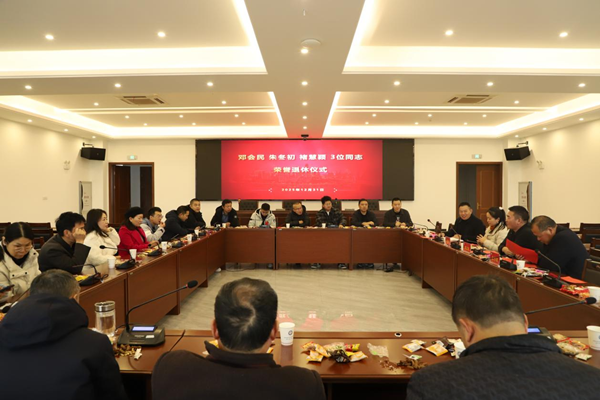 2025年12月31日,国家区域性公路交通应急装备物资湖南(娄底)储备中心(简称:国储娄底中心)在四楼会议室为邓会民、朱冬初、褚慧颖三位老同志举行简朴而隆重的荣退欢送会。全体在家干部职工共同致敬他们数十年如一日的坚守与奉献。