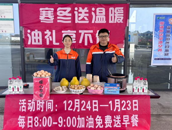 随着寒冬来临,湖南高速服务区经营管理有限公司岳益常区域管理中心以提升司乘出行体验为核心,于近期在永安、屈子祠停车区加油站率先启动“寒冬送温暖 油礼享不停”专项服务活动。本次活动聚焦服务创新与情感关怀,通过“加油+暖心早餐”一体化服务模式,为长途奔波的司乘人员送去温暖,进一步拓展高速公路服务内涵,彰显国企服务为民的责任担当。