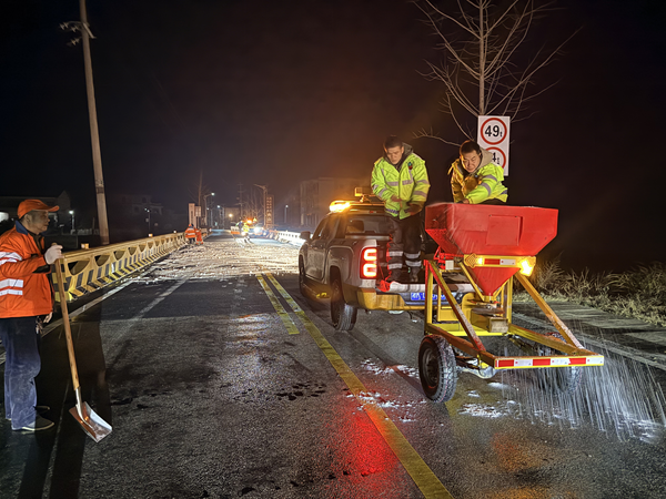 截至当晚23时,累计完成30吨融雪盐的科学撒布,所有重点危险路段结冰隐患全面消除,辖区道路通行状况恢复正常,为群众夜间出行及次日早高峰通行筑牢安全屏障,切实将省交通运输厅“保畅通、保安全、保民生”的工作要求落到实处。