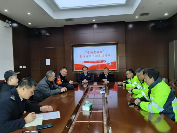 春运首日,由娄底南站党总支书记张永兵同志牵头,联合长沙南站售票车间、娄底南站区各结合部单位成立联合党支部,召开春运首日动员大会,同时以“党旗在一线高高飘扬”为主题,发起了“春运党旗红”实践活动。