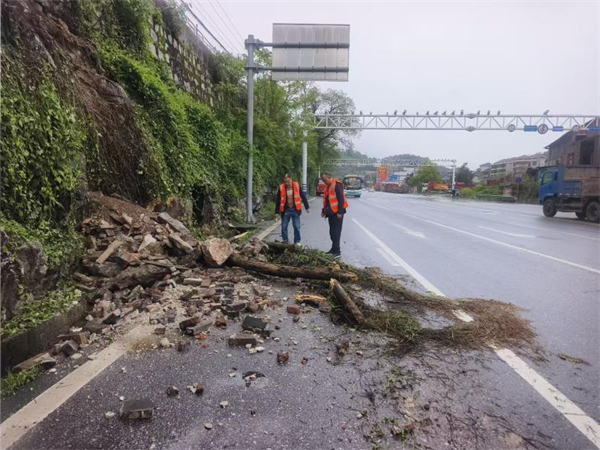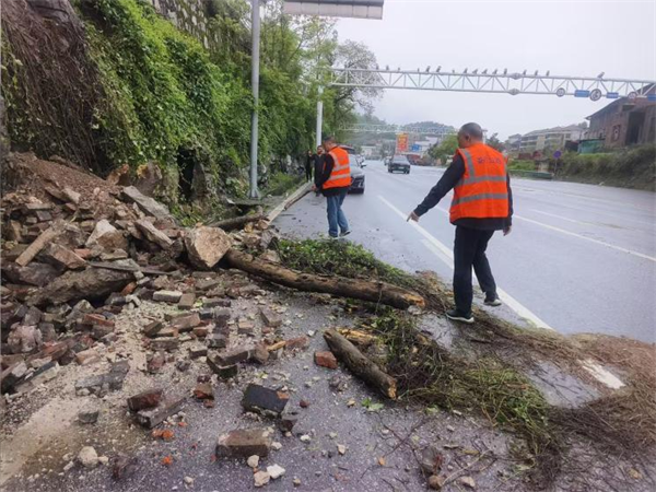 4月16日上午9时左右,G354线冷新路诚意段一边坡突发塌方,塌方区域正位于群众房屋门前下方的山体边坡上,大量砖石、断木及渣土倾泻在公路路面,对过往车辆和行人造成较大影响,存在极大的安全隐患。