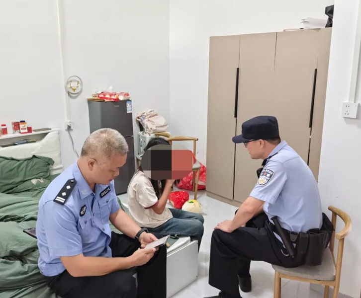 警情就是命令,在信息有限的情况下,洞口县公安局花园派出所立即启动“智慧+人力”双轨搜寻机制。一方面通过大数据平台进行研判分析,另一方面联动社区干部和网格员开展实地排查。经过多方努力,最终联系上小女孩的父亲。经了解,这名女孩因厌学逃学被父亲批评后产生叛逆心理。在民辅警与其父亲共同赶往租住地后,当听到警察身份时,女孩终于从卧室衣柜中走出,民辅警随即对受惊的孩子进行安抚。