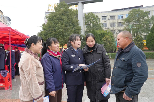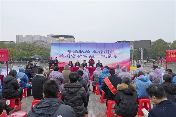 县委常委、政法委书记袁愈绍在讲话中指出,春节期间,守护好人民群众的财产安全至关重要。他要求,各银行网点要当好反诈“前沿宣传岗”,将风险提示有机融入业务流程,在群众办理转账、汇款等业务时做到及时提醒、有效干预。副县长、公安局局长蒙华宁在现场强调,公安机关反诈中心要发挥“核心领航员”作用,加强与金融机构的信息共享与应急联动,实现对诈骗犯罪的精准研判、快速打击。他呼吁各部门通过扎实的宣传教育和严密的防控体系,共同筑起春节反诈的“铜墙铁壁”,确保全县人民平安祥和过佳节。