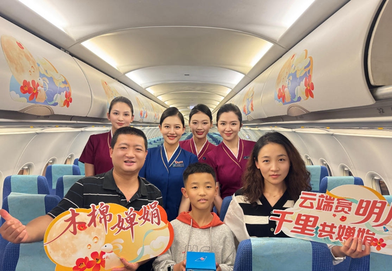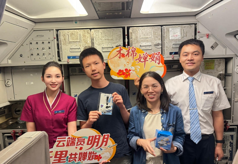 在全力保障运输安全顺畅的同时,南航湖南分公司致力于提升服务品质,通过动态加开值机柜台、开设“爱心通道”等举措,累计为近500名无陪老人、无成人陪伴儿童及其他特殊需求旅客提供了便捷、温馨的出行服务。假日期间,南航在部分航班上精心策划了“月满华诞,木棉相伴”主题航班活动,通过特色客舱布置、传统文化讲解与互动环节,与旅客在万米云端共赏明月,持续打造“空中文化客厅”,传递节日温情,使飞行旅程成为一次独特的文化体验。
