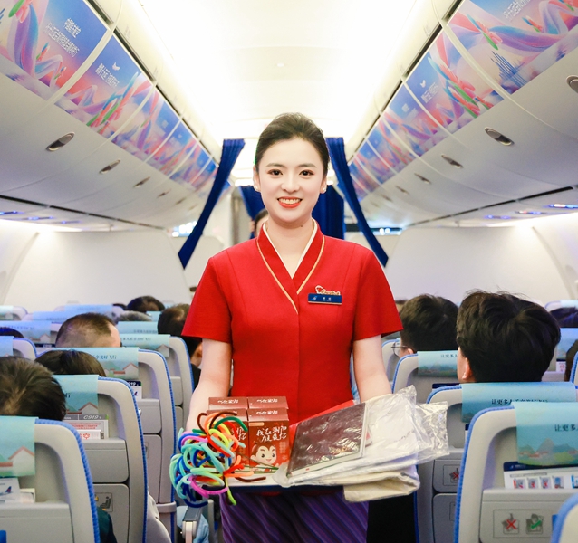 本次主题航班通过文化讲述、情境营造和互动体验,让非遗“飞”上云端,为旅客的云端旅途增添了一抹独特的文化色彩。